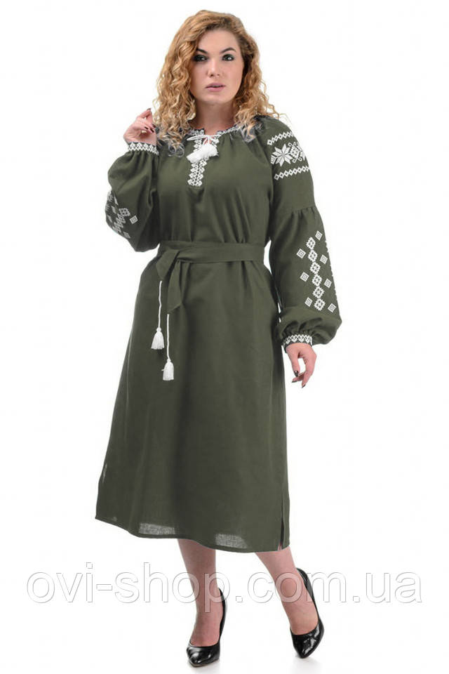 Сукня пошита з якісного льону – щільного та приємного до тіла. Колір і вишивка зберігають свій початковий вигляд після багаторазових прань.