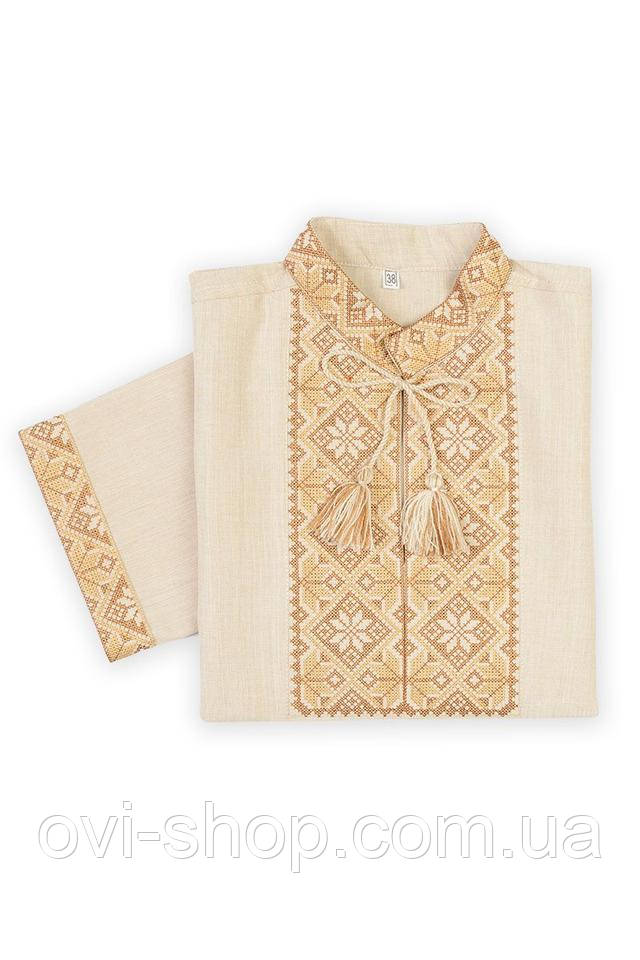 Дитяча вишиванка для хлопчика з коротким рукавом «Family» беж