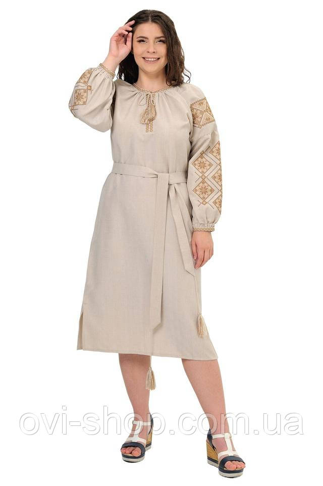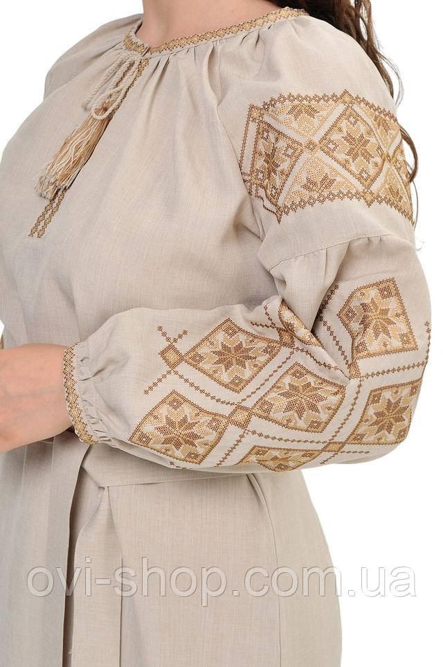 - Вишивка: якісна щільна машинна вишивка в традиційному українському стилі, що додає платтю унікальності.