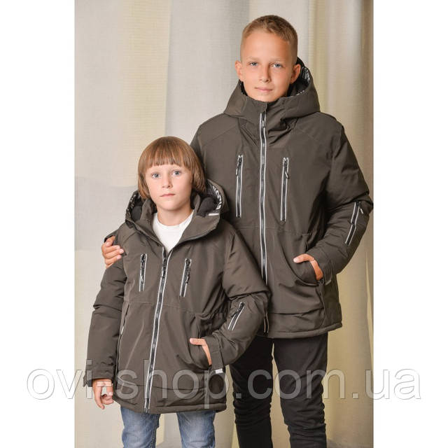 32 розмір (116-122 см). Довжина куртки по середині спинки - 58 см, ширина під проймою (під рукавами) – 45 см, ширина по плечам - 36 см, довжина рукава – 45 см