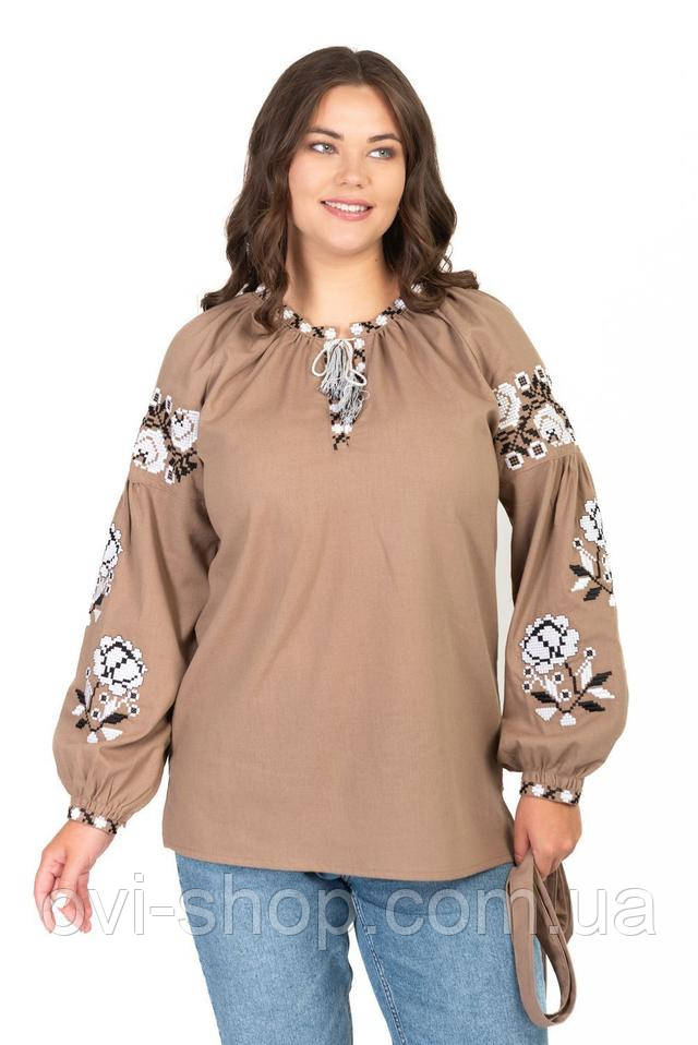 Стильна та ніжна жіноча вишиванка «Троянди» — поєднання традиційної української естетики й сучасного комфорту.